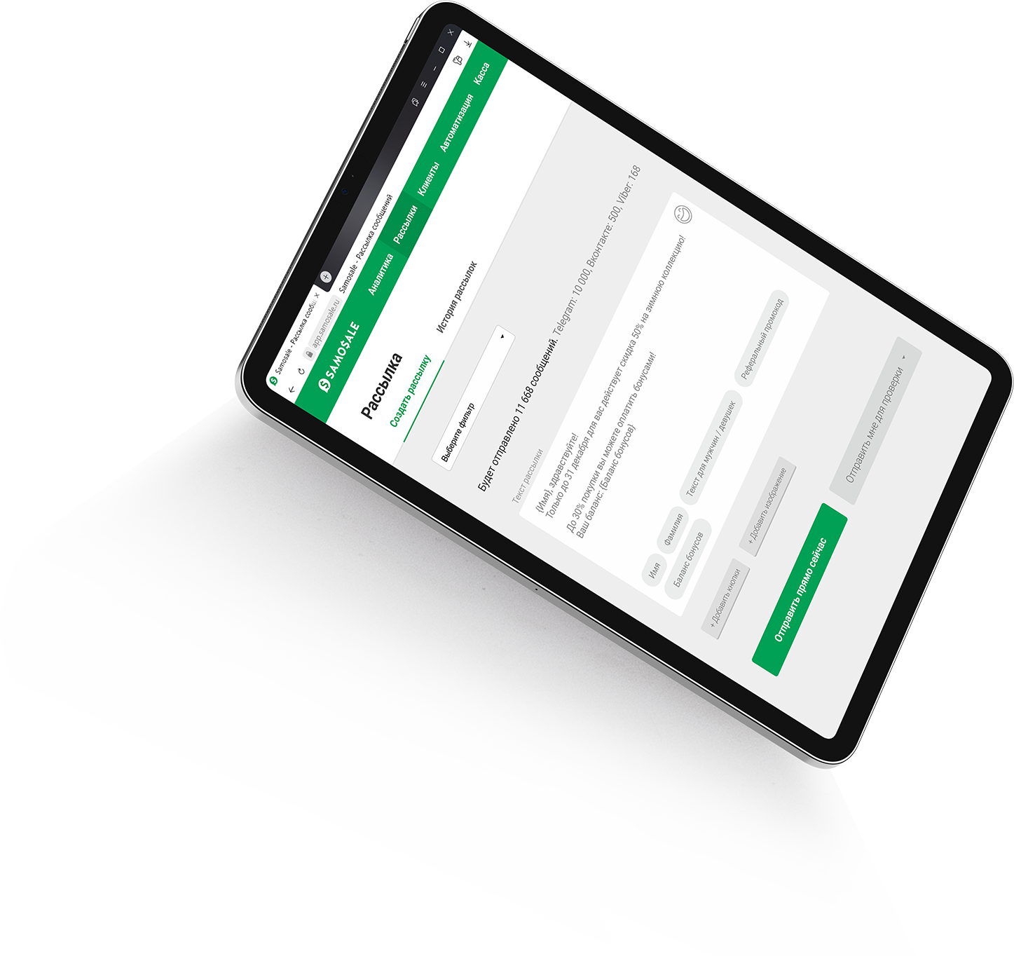 Прекрасный и простой сервис, что важно для девочек. «Бьютишечки» не любят ломать голову над сложными сервисами. Самосейл был опробован мной на трёх салонах красоты. Везде работает, но по-разному. Позволяет разбудить «спящих» клиентов. Повышает лояльность клиентов салона. Большой процент открываемости сообщений. Экономия на доставке сообщений. Невысокая «стоимость» клиента благодаря реферальной программе. Мы отключили таргетированную рекламу . Это дорого и неэффективно. У нас есть SamoSale!